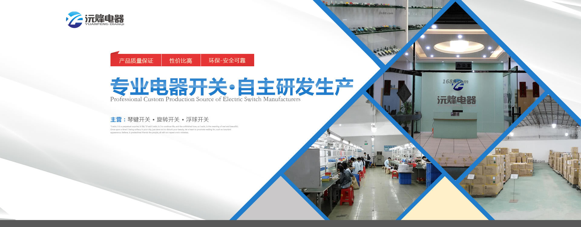 主要生產(chǎn)浮球開(kāi)關(guān)、接近開(kāi)關(guān)、琴鍵開(kāi)關(guān)、旋轉(zhuǎn)開(kāi)關(guān)、微動(dòng)開(kāi)關(guān)、船型開(kāi)關(guān)、拉線(xiàn)開(kāi)關(guān)以及接線(xiàn)座等系列產(chǎn)品。 -
